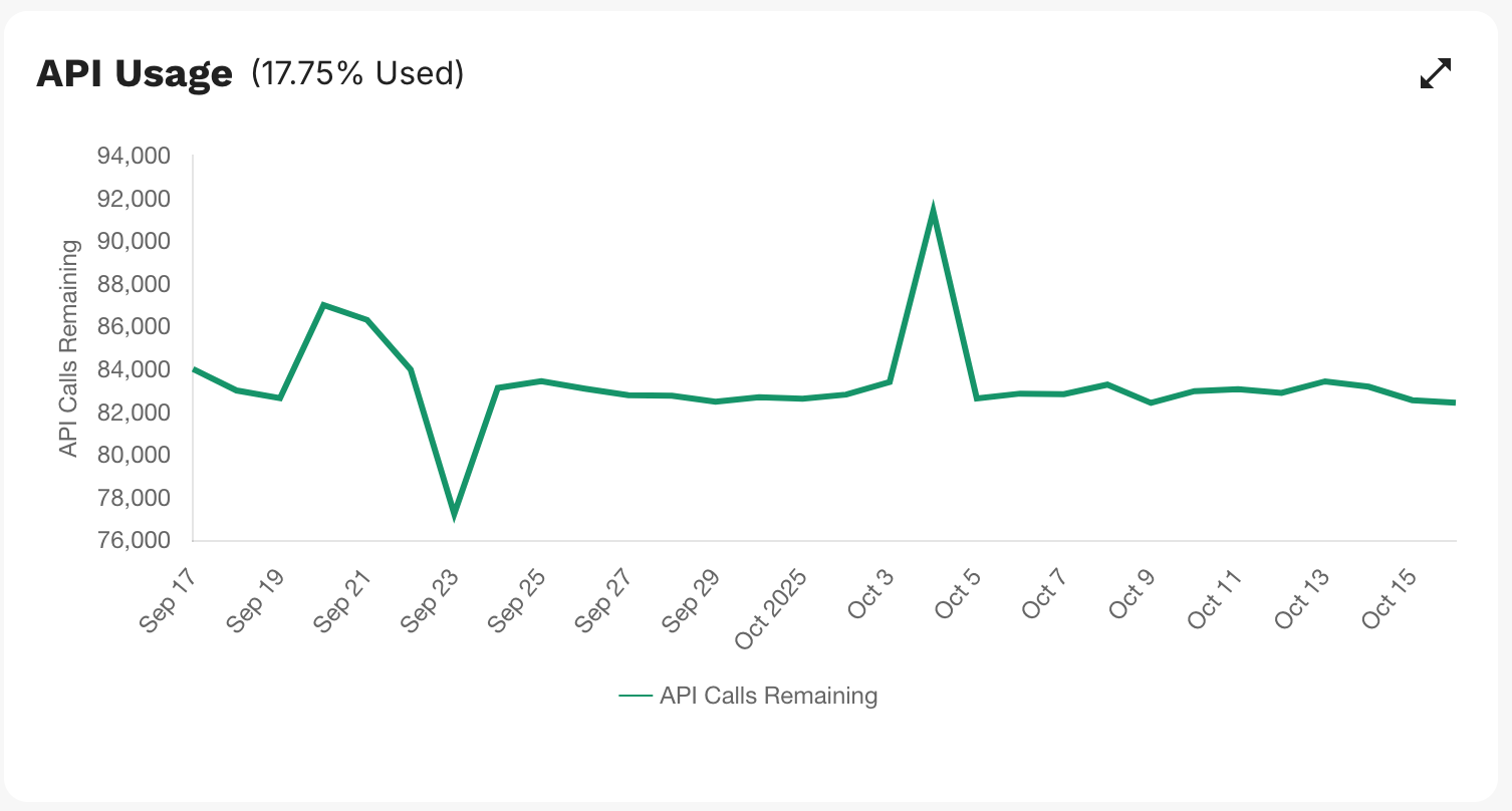 Tracks your remaining Salesforce API calls over time, allowing you to monitor API consumption.&#x20;