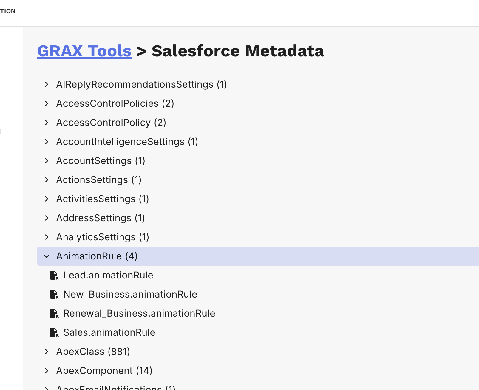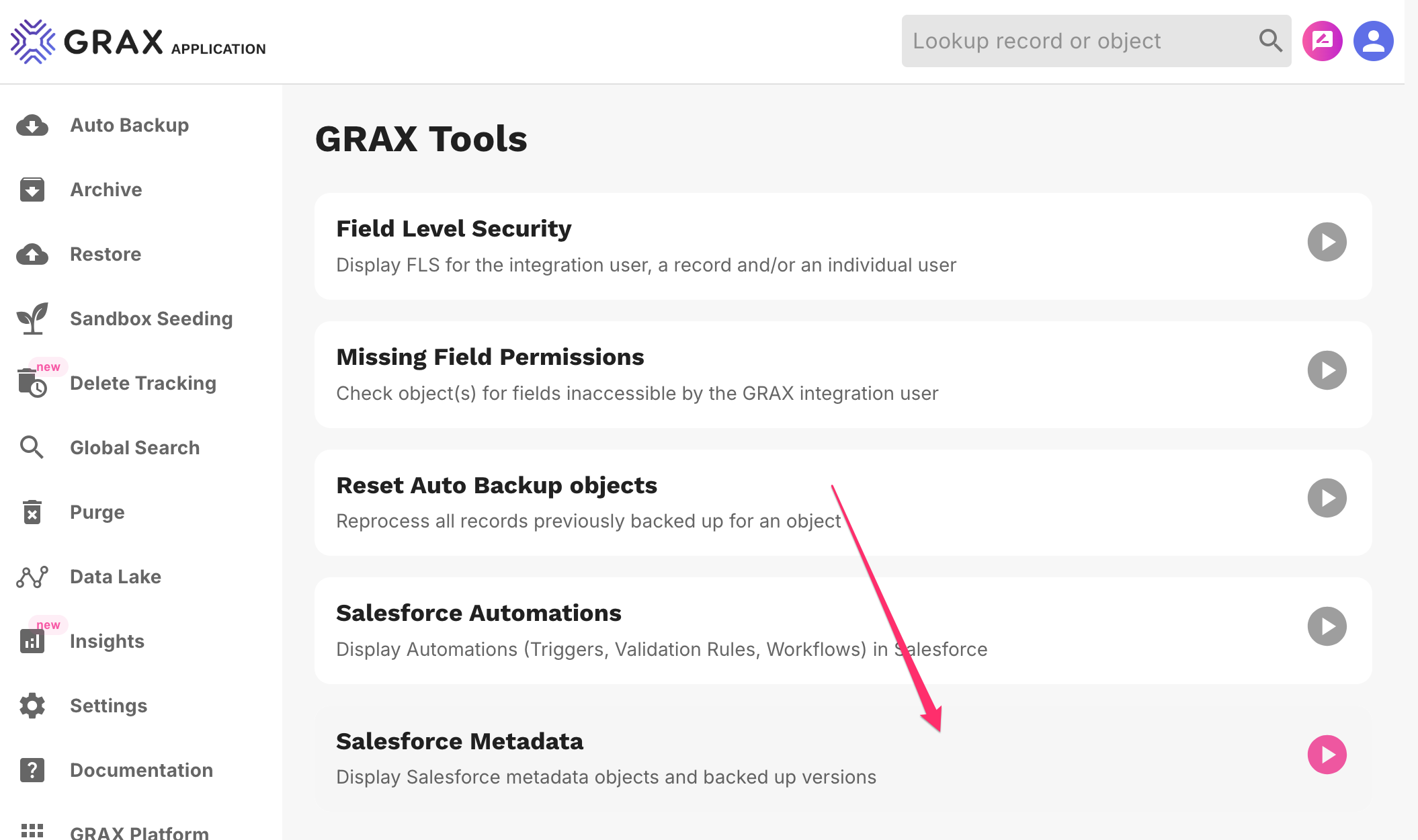 <figure><img src="https://4150568565-files.gitbook.io/~/files/v0/b/gitbook-x-prod.appspot.com/o/spaces%2FwHKnqFEg4DROpG3KCq3D%2Fuploads%2FUarP2nDEI2z1whrsOkvZ%2Fmetadata-tools-menu.png?alt=media&#x26;token=c906c944-9f3b-4de2-b55a-20e06b742cce" alt=""><figcaption><p>Metadata Explorer in GRAX Tools List</p></figcaption></figure>