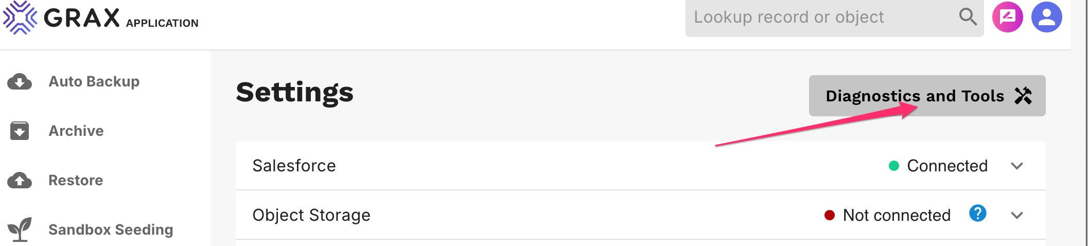 <figure><img src="https://4150568565-files.gitbook.io/~/files/v0/b/gitbook-x-prod.appspot.com/o/spaces%2FwHKnqFEg4DROpG3KCq3D%2Fuploads%2FlpA1Ml5YX5gd4XUGExiF%2Fsettings-diagnostics-tools.png?alt=media&#x26;token=5397c89c-b9c7-40ca-8974-8c299314e56e" alt=""><figcaption><p>Getting to GRAX Tools List</p></figcaption></figure>